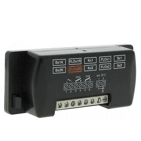 FLO FLOX2R NICE Récepteur radio universel indépendant 2 canaux en 433.92 Mhz pour motorisation de portail. Compatible avec les télécommandes NICE FLO-RS, et NICE ONE, ON, ERA, INTI … en 433.92 Mhz à rolling code (code tournant). Ce récepteur remplace la référence FLOX1R. Trés facile à brancher, il s’installe sur toutes les marques d’automatismes..