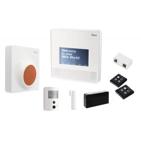Description Kit alarme à sirène MyNice sans fil permettant la gestion intégrée du système d’alarme et des automatismes radio Nice connectés : stores, volets roulants, portails, portes de garage, systèmes d’éclairage et autres charges électriques.Grâce au système Nice TAG, il est possible de gérer également d’autres automatismes distribués sur le marché.Transmission radio bidirectionnelle Dual Band avec écran tactile couleurs.Alimentation 110-240 Vac , Module Wi-Fi intégré.Gestion via tablette/PC/smartphone possible.Composition :-1 centrale d’alarme et d’automatisation MyNice MNCUT.-1 sirène d’alarme extérieure avec clignotant intégré à LED MyNice MNS.-2 télécommandes portatives MyNice MNTX8.-1 détecteur à infrarouges volumétrique avec fonction appareil photo MyNice MNPIRTVCC.-1 détecteur d’ouverture à contact MyNice MNMC.-1 module de communication par ligne analogique RTC MyNice MNPSTN.-1 batterie de secours au plomb 6 V 1,2Ah MyNice B6V-A.4315.