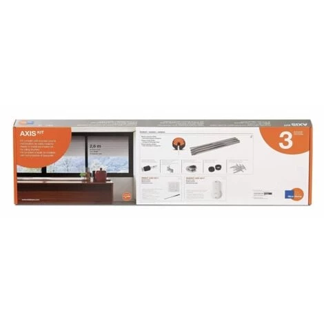Ce kit prêt à poser est livré avec 1 moteur tubulaire filaire 30 Nm avec fins de course mécaniques et 1 interrupteur 3 boutons (montée / descente / stop).