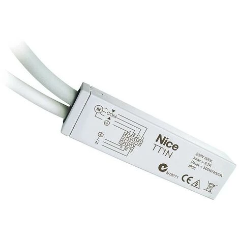 Grâce au récepteur NICE TT1N, vous serez en mesure de gérer vos motorisations et automatismes en tout confort. Ce récepteur radio permet de transformer un moteur de volet roulant à commande filaire en radio. Il se branche entre l’arrivée électrique et le moteur, et permet de commander un moteur tubulaire fonctionnant sous une tension de 230 V et dont la puissance peut atteindre 500 W.