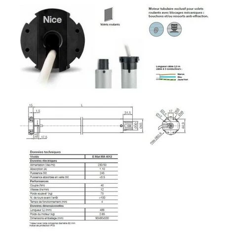Moteur Era Mat MA 4012, récepteur intégré et technologie TTBUS, 45 mm, 40 Nm, 12Rpm, max 78 Kg, fin de
