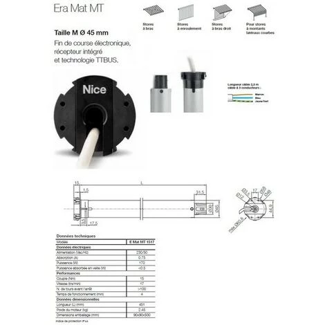 Moteur Era Mat MT 1517, récepteur intégré et technologie TTBUS, 45 mm, 15Nm,17Rpm, fin de course