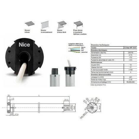 Moteur Era Zero Star MT, filaire, 45 mm, 15 Nm, 17Rpm.