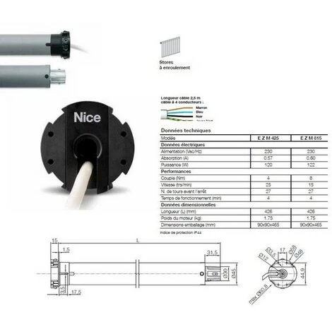 Moteur Era Zero M, filaire, 8 Nm, 15Rpm, fin de course mécanique.