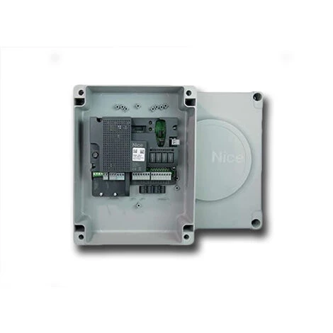 NICE – UNITÉ DE CONTRÔLE POUR UN OU DEUX MOTEURS 230V, POUR PORTAILS BATTANTSÉQUIPÉE D’UNE TECHNOLOGIE NICE BLUEBUS COMPATIBLE AVEC LE SYSTÈME OPERA POUR LA GESTION, LA PROGRAMMATION ET LE DIAGNOSTIC DES AUTOMATISMES, ÉGALEMENT À DISTANCEPREDISPOSÉE POUR L’INSERTION DE RÉCEPTEURS SM ENFICHABLESALIMENTATION UNIVERSELLE: 120/230 Vac; 50/60 Hz NICE MC800