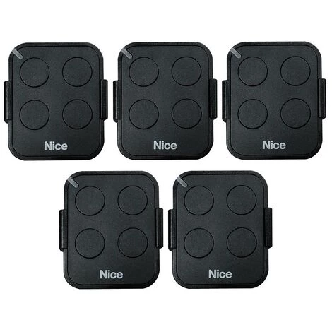 Lot de 5 télécommandes NICE FLO4RE noire, 4 boutons, de fréquence 433,92 Mhz.