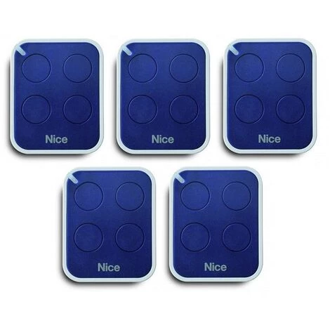 Lot de 5 télécommandes NICE ON4EFM, bleue, 4 boutons, de fréquence 868,46 Mhz.